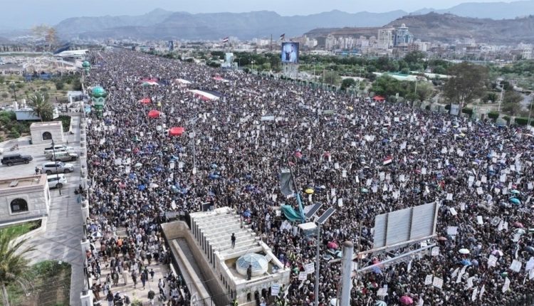 الحشود الملايينية بالعاصمة صنعاء تعلن الاستنفار الشامل للرد على العدوان الإسرائيلي