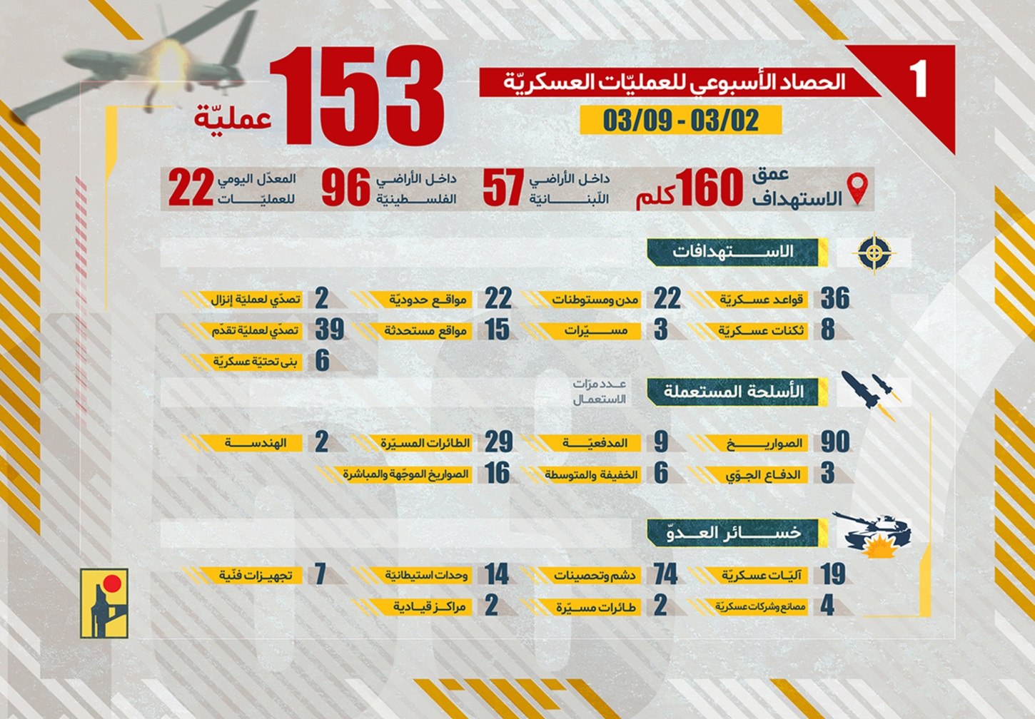 المقاومة الإسلامية في لبنان: نفذنا 153 عملية عسكرية ضد العدو الصهيوني خلال أسبوع