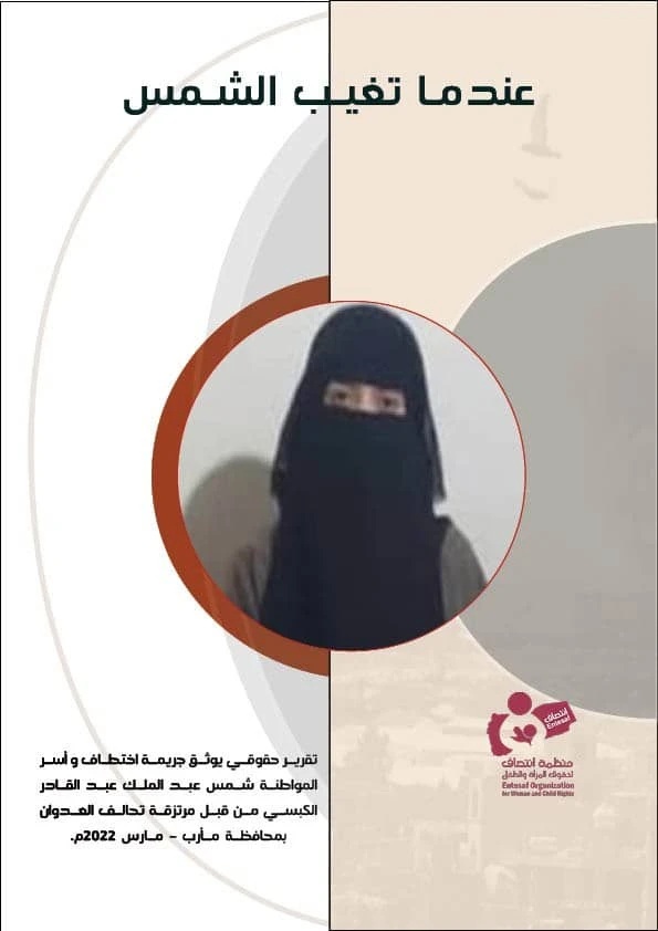 تقرير لمنظمة انتصاف يوثق جريمة اختطاف وأسر المواطنة شمس الكبسي في مأرب