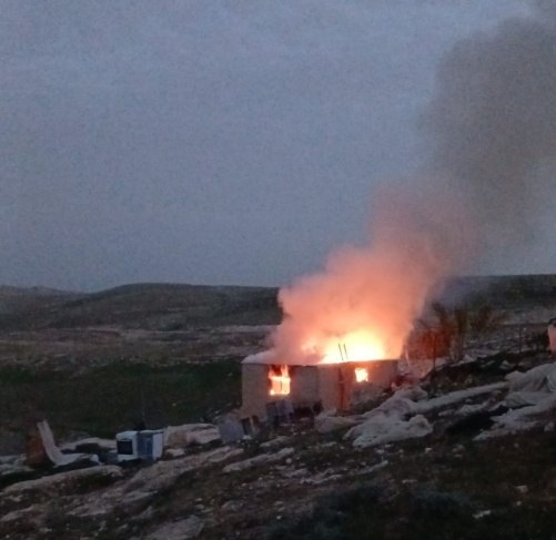 مستوطنون صهاينة يحرقون مسكنا ويدمرون ممتلكات في مسافر يطا جنوب الخليل
