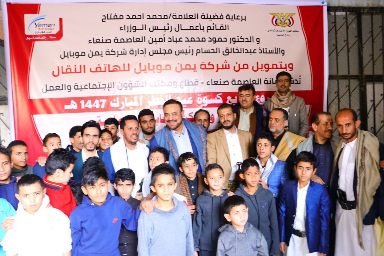 أمين العاصمة ورئيس مجلس إدارة يمن موبايل يدشنان مشروع توزيع كسوة العيد لنزلاء دور ومراكز الرعاية الاجتماعية