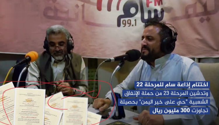 الثورة نت/.. اختتمت إذاعة “سام، إف إم” المرحلة الـ 22 من حملة الإنفاق الشعبية “حيّ على خير اليمن”، وتدشين المرحلة الـ 23 من الحملة تحت شعار “معًا نصنع فخر اليمن.. ونبيّض وجه الأمة”. وأوضح مدير الإذاعة حمود شرف لوكالة الأنباء اليمنية (سبأ) أن الإذاعة اختتمت المرحلة الـ 22 من الحملة بحصيلة إجمالية بلغت 317 مليونًا، […]