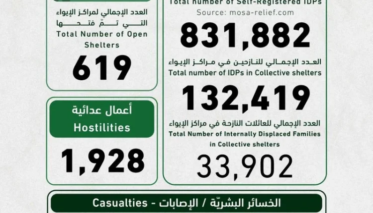 يمني برس | ارتفع عدد النازحين في لبنان، جرّاء تصعيد العدوان الصهيوني منذ 2 مارس الجاري إلى 831,882 نازحاً مسجلاً ذاتيا. وقالت وحدة إدارة مخاطر الكوارث في رئاسة مجلس الوزراء اللبناني، في تقريرها اليومي، مساء أمس السبت، حول أعداد النازحين والشهداء والجرحى، إن من بين هؤلاء النازحين 132,419 نازحاً يحتويهم 619 مركز إيواء، مشيرة […]