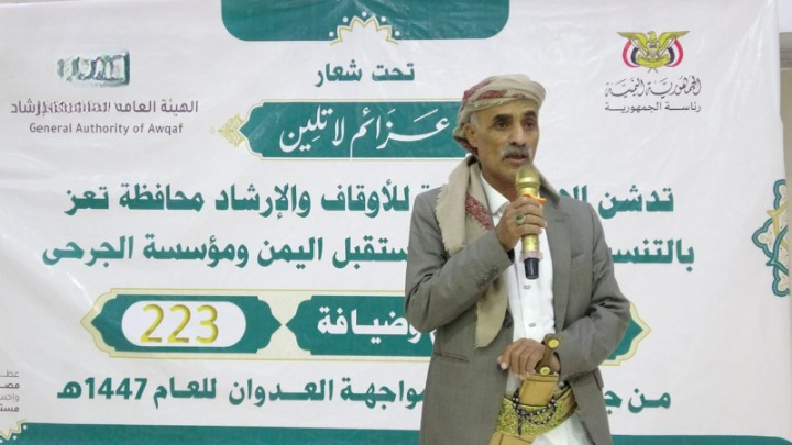 الثورة نت/.. دشن مكتب الهيئة العامة للأوقاف والإرشاد بمحافظة تعز، اليوم، مشروع تكريم وضيافة 223 من جرحى ومعاقي العدوان، وفاءً وعرفاناً لتضحياتهم التي سطّروها دفاعاً عن الوطن وسيادته واستقلاله. ويأتي تنفيذ المشروع بالتنسيق مع جمعية مستقبل اليمن ومؤسسة الجرحى، تحت شعار “عَزَائم لا تلِين”، بتكلفة أربعة ملايين و460 ألف ريال، في إطار البرامج والمشاريع الإنسانية […]