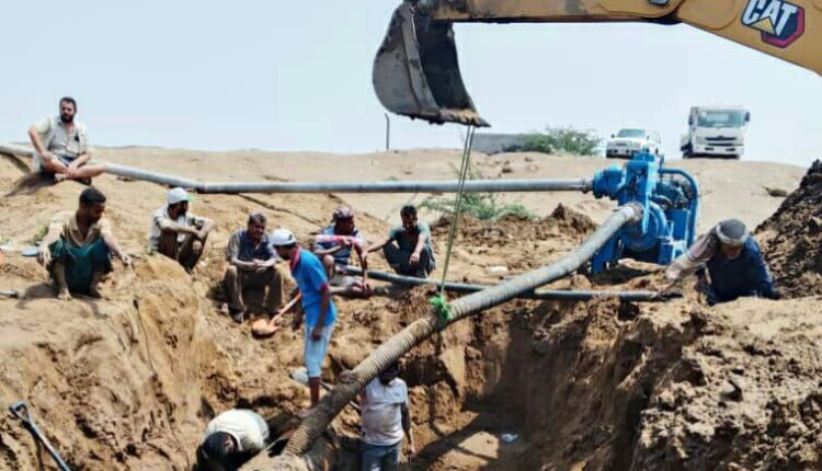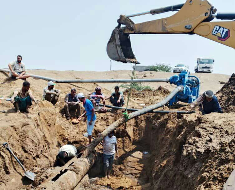 إصلاح الخط الرئيسي للصرف الصحي في منطقة البيضاء بالحديدة