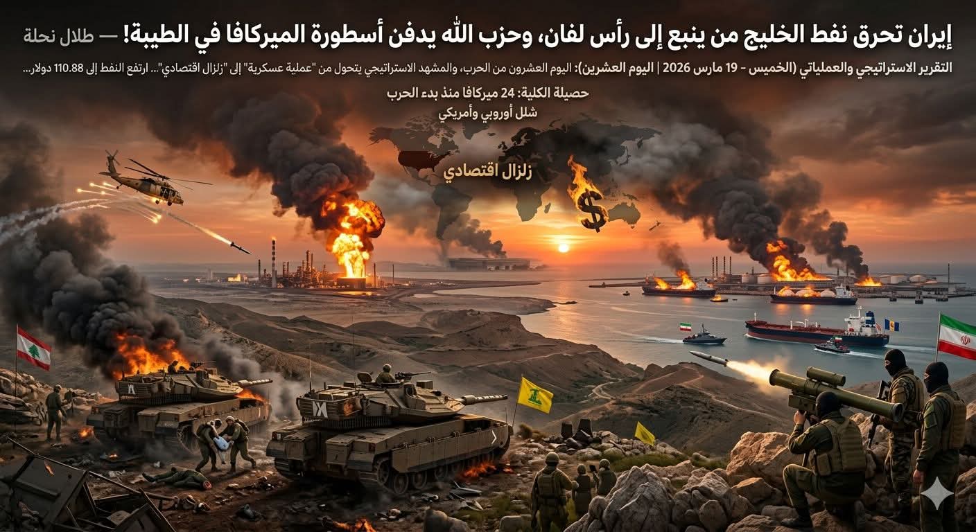 ندخل اليوم العشرين من الحرب، والمشهد الاستراتيجي يتحول من “عملية عسكرية” إلى “زلزال اقتصادي”، بعد استهداف إسرائيل لحقل “بارس” الإيراني، نفذت طهران وعدها وأطلقت العنان لمسيراتها وصواريخ، مستهدفة قلب البنية التحتية للطاقة في الخليج (مصفاة ينبع في السعودية، وحقل رأس لفان في قطر، وناقلات في الإمارات)، ليرتفع النفط إلى 110.88 دولار مقدنة ليصيب أوروبا والولايات […]