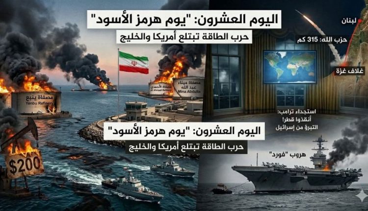 في اليوم العشرين، يغرق العالم في “اليوم الأسود” الذي حذرت منه طهران, لقد تحولت المعركة من قصف متبادل إلى حرب اقتصادية ساحقة، حيث أثبت الإيرانيون قدرتهم على تحويل “مضيق هرمز” ونفط الخليج إلى مقصلة تهدد بانهيار الرأسمالية الغربية. ترامب، الذي يعيش حالة إنكار، يخرج بتصريح “استجدائي” غير مسبوق، متبرئاً من ضربة حقل “بارس” الإيراني، ومحذراً […]