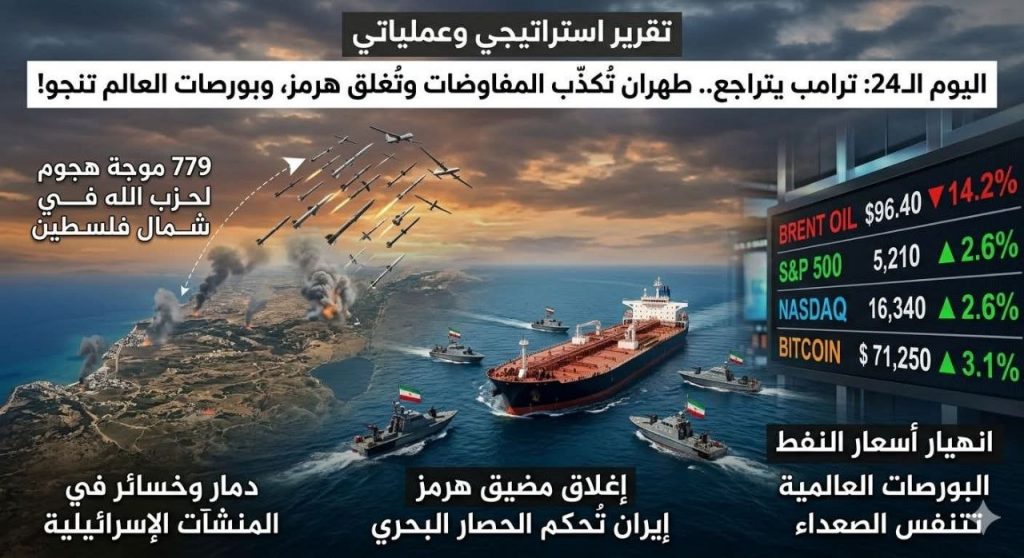 ترامب “ينزل عن الشجرة” بوهمِ المفاوضات.. طهران تُكذّبه وتُحكم إغلاق هرمز، وبورصات العالم تتنفس الصعداء بينما تغرق إسرائيل في 779 موجة لحزب الله!