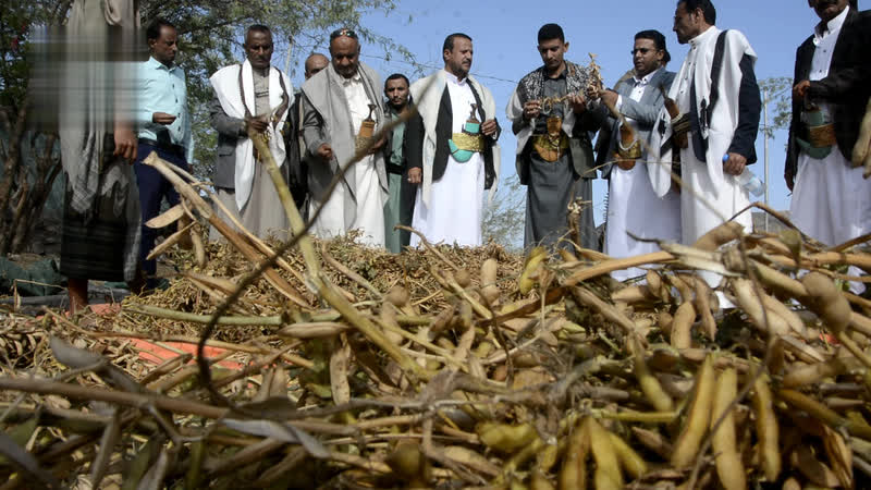 الشمسي يدشّن حصاد فول الصويا والقمح في مقبنة بتعز