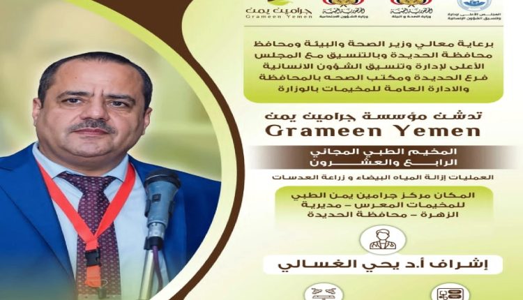يمني برس || الحديدة: من المقرر أن تدّشن مؤسسة جرامين يمن يوم غد الأحد المخيم الطبي المجاني الـ24 لجراحة العيون بمديرية الزهرة في محافظة الحديدة. وقالت المؤسسة في بيان لها: إن المخيم الذي يستمر خمسة أيام، بالتنسيق مع وزارة الصحة والبيئة ومكتبها في المحافظة، يهدف إلى إجراء 300 عملية جراحية تشمل المياه البيضاء، وزراعة العدسات، […]