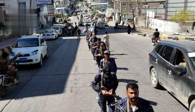 إدارة أمن الظهار بإب تنظم مسيرًا راجلًا ووقفة تأييدًا للإنجازات الأمنية