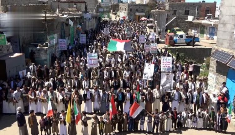 الثورة نت /.. شهدت محافظة ريمة اليوم، أكثر من 100 مسيرة جماهيرية مباركة بالانتصار التاريخي لمحور المقاومة، وتأكيدا على الثبات مع غزة ولبنان تحت شعار “شكراً لله واحتفاءً بالنصر .. ساحاتنا واحدة في مواجهة الصهيونية”. ورفع المشاركون في المسيرات بمركز المحافظة ومديريات الجبين ومزهر وكسمة وبلاد الطعام والجعفرية والسلفية بمشاركة قيادات السلطة المحلية والتعبوية ومشايخ […]