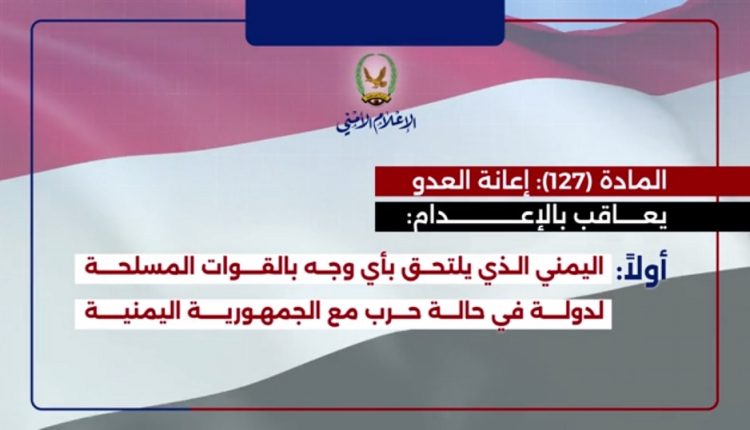 تعرف على عقوبة الخيانة للوطن والعمالة مع العدوان في القانون اليمني.. فلاش Share أبريل 14, 2026 يمني برس || متابعات: تعرف على عقوبة الخيانة للوطن والعمالة مع العدوان في القانون اليمني.. فلاش… الذهاب إلى المصدر Share FacebookTwitterGoogle+ReddItWhatsAppPinterestEmail