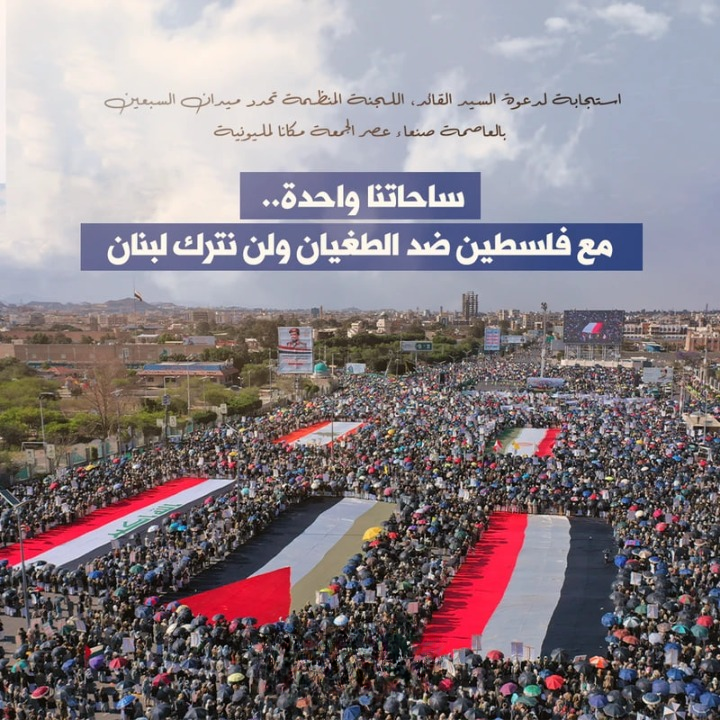 نداء “الساحات الواحدة”.. اللجنة المنظمة تدعو الشعب اليمني لنفير مليوني غداً الجمعة إسناداً لفلسطين ولبنان