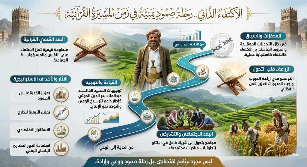 في لحظةٍ تاريخيةٍ فارقة، لم يعد الاكتفاء الذاتي في اليمن مجرد خيارٍ اقتصادي أو شعارٍ مرحلي، بل تحوّل إلى مسار وطني شامل يعكس إرادة الصمود، ويعبّر عن تحوّل عميق في الوعي الجمعي، ففي ظل التحديات المعقّدة والظروف الضاغطة، برز هذا المفهوم بوصفه استجابة عملية وواعية، تستند إلى منظومة قيمية مستمدة من الثقافة القرآنية، وتستهدف تحرير […]