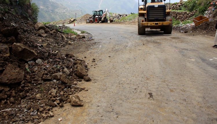 مؤسسة الطرق في ريمة تواصل رفع مخلفات سيول الأمطار