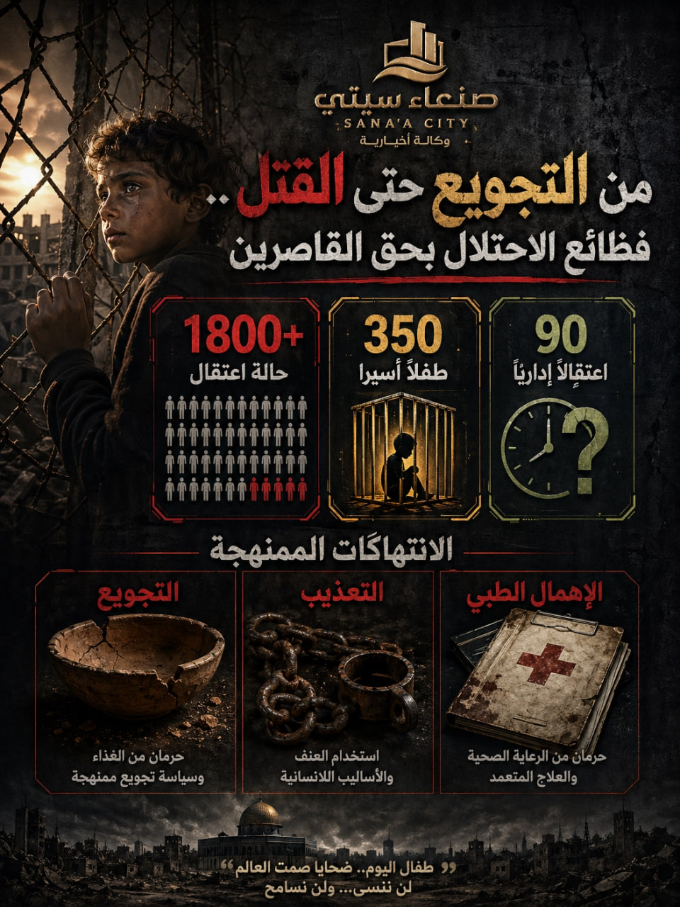 The post من التجويع حتى القتل.. تقرير حقوقي يكشف فظائع الاحتلال بحق القاصرين في سجون “مجدو” و”عوفر” first appeared on موقع صنعاء سيتي.