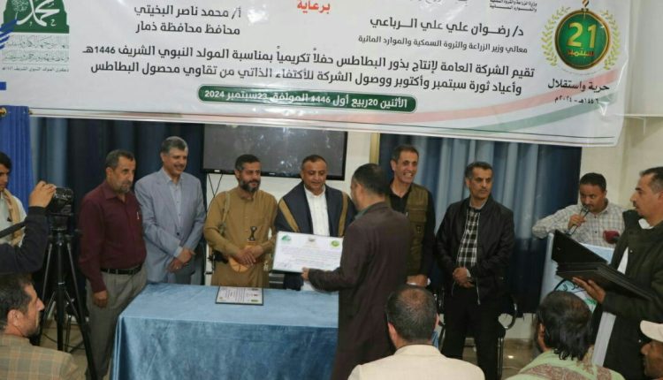 الثورة نت/.. كرم وزير الزراعة والثروة السمكية والموارد المائية، الدكتور رضوان الرباعي، ومحافظ ذمار، محمد ناصر البخيتي، اليوم، كوادر الشركة العامة لإنتاج بذور البطاطس؛ لجهودهم في تحقيق النجاحات التي وصلت إليها الشركة في تحقيق الاكتفاء الذاتي من تقاوي محصول البطاطس. في حفل التكريم، أكد الوزير الرباعي استعداد الوزارة، ممثلة بالشركة العامة لإنتاج بذور البطاطس؛ لتأمين […]