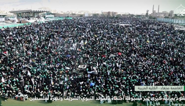 يمانيون – متابعات سجّلت المرأةُ اليمنيةُ حضوراً كَبيراً ومشرِّفاً من خلال الاحتفاء بفعاليات ذكرى المولد النبوي الشريف، وحضور الفعالية المركزية يوم الثاني عشر من شهر ربيع الأول الماضي. وخرجت المرأة في هذا اليوم مع أطفالها وبكبر سنها وعجزها متحملة عناء الوصول للساحات حباً لرسول الله لإحيَـاء هذه المناسبة التي تحيي القلوب بقيم وأخلاقيات النبي المصطفى […]