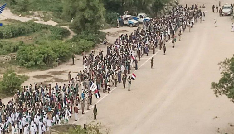 عرض شعبي لقوات التعبئة في وشحة بحجة احتفاء بالعيد العاشر لثورة 21 سبتمبر