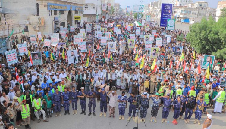 73 مسيرة جماهيرية حاشدة في الحديدة تنديداً باغتيال الشهيد نصر الله وتضامناً مع لبنان وفلسطين