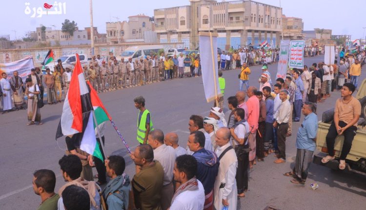 أبناء الحديدة ينددون بالعدوان الإسرائيلي الغاشم على الأعيان المدنية في المحافظة