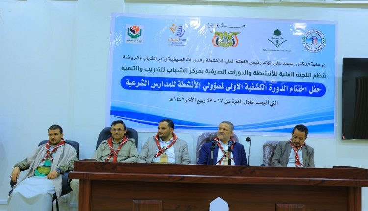 يمانيون../ اختتمت بصنعاء اليوم، الدورة الكشفية الأولى لمسؤولي الأنشطة للمدارس الشرعية، نظمتها اللجنة الفنية للأنشطة والدورات الصيفية في مركز الشباب للتدريب والتنمية. هدفت الدورة التي استمرت أسبوعين إلى إكساب 46 مشاركا من مسؤولي الأنشطة بالمدارس الشرعية، المعارف والمهارات الكشفية، وتفعيل الأنشطة المجتمعية الطوعية. وفي الاختام أكد وزير الشباب والرياضة – رئيس اللجنة العليا للأنشطة والدورات […]