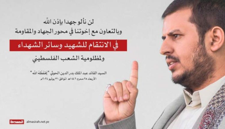 قائد الثورة السيد عبدالملك بدر الدين الحوثي يعزي في استشهاد إسماعيل هنية وفؤاد شكر ويتوعد العدو بالانتقام
