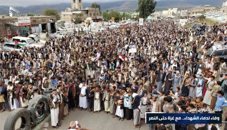 مسيرات جماهيرية حاشدة بذمار تضامناً مع الشعب والمقاومة الفلسطينية وتنديداً باغتيال القائدين هنية وشكر