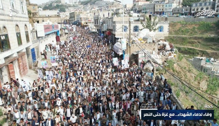 مسيرات جماهيرية حاشدة في حجة تحت شعار “وفاءً لدماء الشهداء.. مع غزة حتى النصر” Share أغسطس 2, 2024 مسيرات جماهيرية حاشدة في حجة تحت شعار “وفاءً لدماء الشهداء.. مع غزة حتى النصر” الذهاب إلى المصدر Share FacebookTwitterGoogle+ReddItWhatsAppPinterestEmail