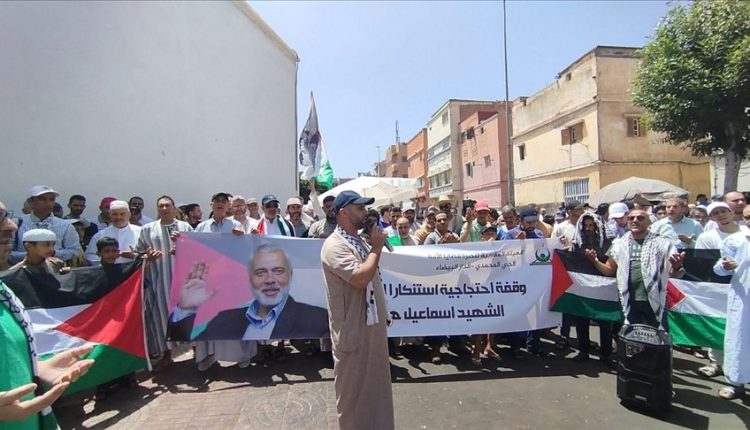 آلاف المغاربة يتظاهرون تنديدا باغتيال القائد هنية