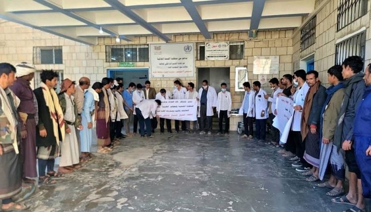 وقفة بمستشفى 26 سبتمبر في الجوبة تنديدًا باستهداف للقطاع الصحي بغزة