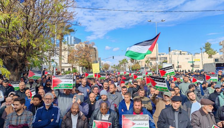 انطلقت اليوم الجمعة مسيرة شعبية حاشدة من أمام مسجد عباد الرحمن بالقرب من السفارة الأمريكية في العاصمة عمّان، تنديدًا بالدعم الأمريكي للعدوان الصهيوني المتواصل على قطاع غزة منذ 420 يومًا، وتأكيدًا على التضامن مع الشعب الفلسطيني وحقوقه العادلة في الضفة وقطاع غزة. وتأتي هذه الفعالية بدعوة من الحركة الإسلامية والملتقى الوطني لدعم المقاومة […]