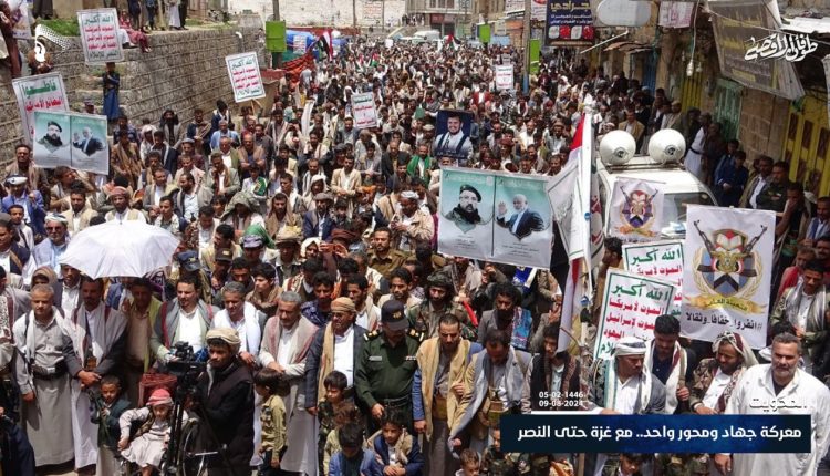 أبناء المحويت يحتشدون في 32 مسيرة ووقفة تأكيداً على ثبات الموقف اليمني في إسناد الشعب الفلسطيني
