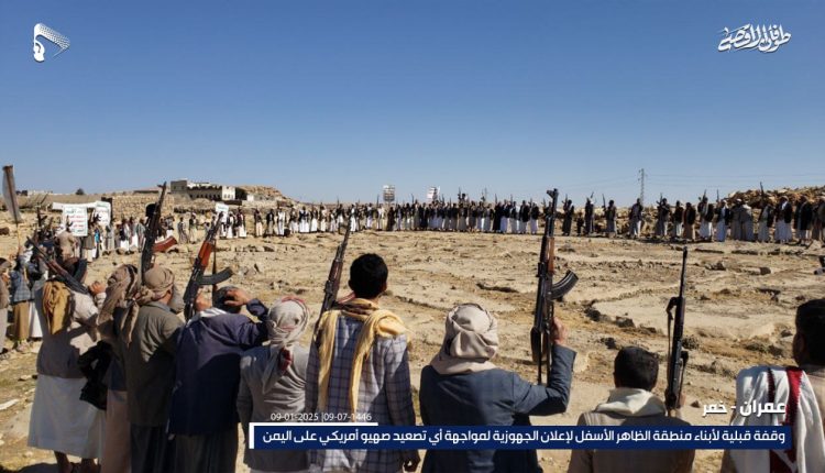 صور | وقفة قبلية لأبناء منطقة الظاهر الأسفل في مديرية خمر بـعمران لإعلان الجهوزية لمواجهة أي تصعيد صهيو أمريكي على اليمن 09-07-1446 | 09-01-2025