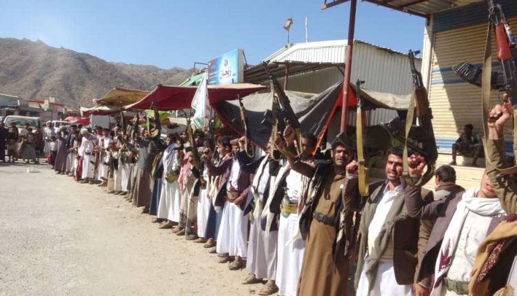 وقفة قبلية مسلحة في مديرية منبه بصعدة تأكيداً للجاهزية لمواجهة الأعداء