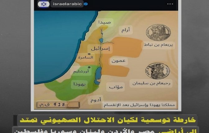 يمانيون../ في خضمِّ لهيب العدوان الصهيوأمريكي المتواصل على قطاع غزة ومع تبني حسابات رسمية صهيونية خرائط تُظهر مناطق في الأردن وسوريا ولبنان ومصر كجزء مما تزعم بـ”إسرائيل الكبرى”، بات واضحًا أن طموحات الحركة الصهيونية لا تقف عند حدود فلسطين المحتلة، بل تتجاوزها، الى الهيمنة الشاملة على المنطقة العربية ومنطقة الشرق الأوسط عموما. واليوم، يتضح أن […]