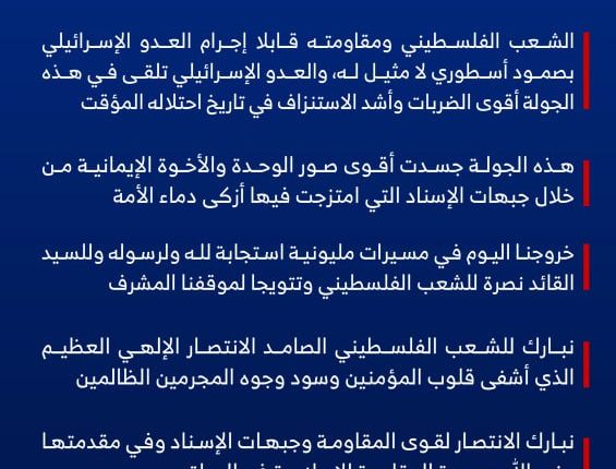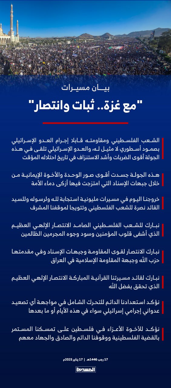 🟦 بيان مسيرات (مع غزة.. ثبات وانتصار) | 17 رجب 1446هـ 17 يناير 2025م Share يناير 17, 2025 بيان مسيرات (مع غزة.. ثبات وانتصار) | 17 رجب 1446هـ 17 يناير 2025م الذهاب إلى المصدر Share FacebookTwitterGoogle+ReddItWhatsAppPinterestEmail