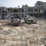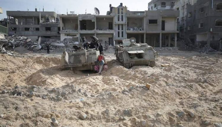 آليات عسكرية  مدمرة تركها جيش العدو الصهيوني داخل حي تل السلطان برفح جنوب قطاع غزة