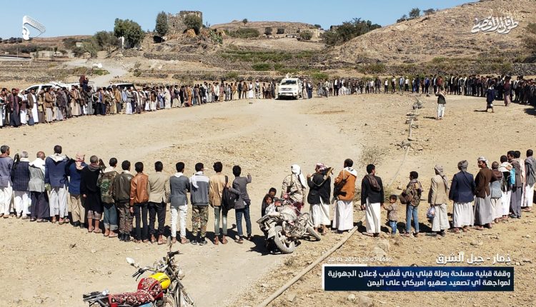 صور | وقفة قبلية بعزلة قِبلي بني قُشيب في مديرية جبل_الشرق في ذمار لإعلان الجهوزية لمواجهة أي تصعيد صهيو أمريكي على اليمن 20-07-1446 | 20-01-2025